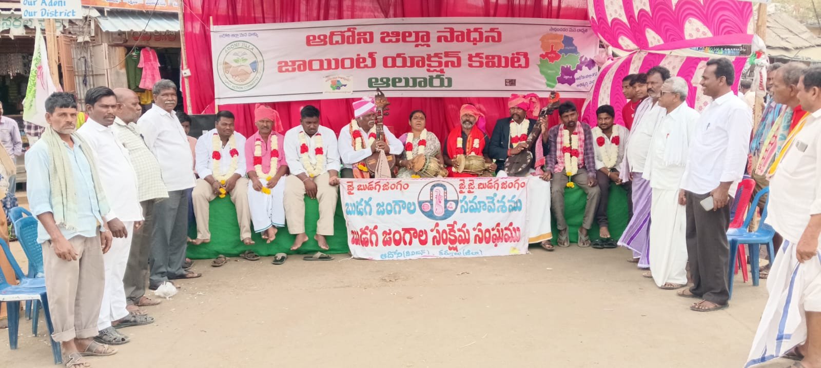 ఆదోని జిల్లాగా ప్రకటించాలనే డిమాండ్తో కొనసాగుతున్న ఉద్యమానికి బుడగ జంగాలీలు మద్దతు ప్రకటించారు. సోమవారం అలూరు జేఏసీ ఆధ్వర్యంలో నిర్వహిస్తున్న 46వ రోజు రిలే దీక్షల్లో బుడగ జంగాల సంక్షేమ సంఘం సభ్యులు పాల్గొని నిరసన తెలిపారు.సంప్రదాయ వాయిద్యాలు, పద్యాలు, బుర్రకథల రూపంలో ప్రభుత్వాన్ని వేడుకుంటూ ఆదోని జిల్లాగా ప్రకటించాలంటూ నినాదాలు చేశారు. వెనుకబడిన అలూరు నియోజకవర్గం సమగ్ర అభివృద్ధి చెందాలంటే ఆదోనిని జిల్లాగా ప్రకటించడమే ఏకైక మార్గమని వారు స్పష్టం చేశారు.ఈ సందర్భంగా బుడగ జంగాల సంక్షేమ సంఘం రాష్ట్ర నాయకులు సిరివటి మహేంద్రకుమార్ మాట్లాడుతూ, ఆదోని జిల్లా సాధన కోసం అన్ని వర్గాలు ఐక్యంగా పోరాడాల్సిన అవసరం ఉందన్నారు. ప్రభుత్వం వెంటనే స్పందించి ఆదోనిని జిల్లాగా ప్రకటించాలని డిమాండ్ చేశారు.ఈ దీక్షల్లో కుమార్, చిన్న రంగన్న, చిన్న, ఈరన్న, మహేష్, పెద్ద ఈరన్న, కషన్న, మోషమ్మ, మల్లేష్, నాగప్ప, మోతి, బద్రి, మారెప్ప, మోతిగజలప్ప పాల్గొన్నారు.దీక్షలకు అలూరు జేఏసీ నాయకులు కత్తి రామాంజినేయులు, భూపేష్, ఎల్లప్ప, చంద్రకాంత్ రెడ్డి, దాపల గోపాల్, పూల రామాంజనేయులు, అలాగే మాజీ సైనికులు మహేష్, వేమిరెడ్డి మద్దతు ప్రకటించారు. ఆదోనిని జిల్లాగా ప్రకటించే వరకు ఉద్యమం ఆగదని వారు స్పష్టం చేశారు.