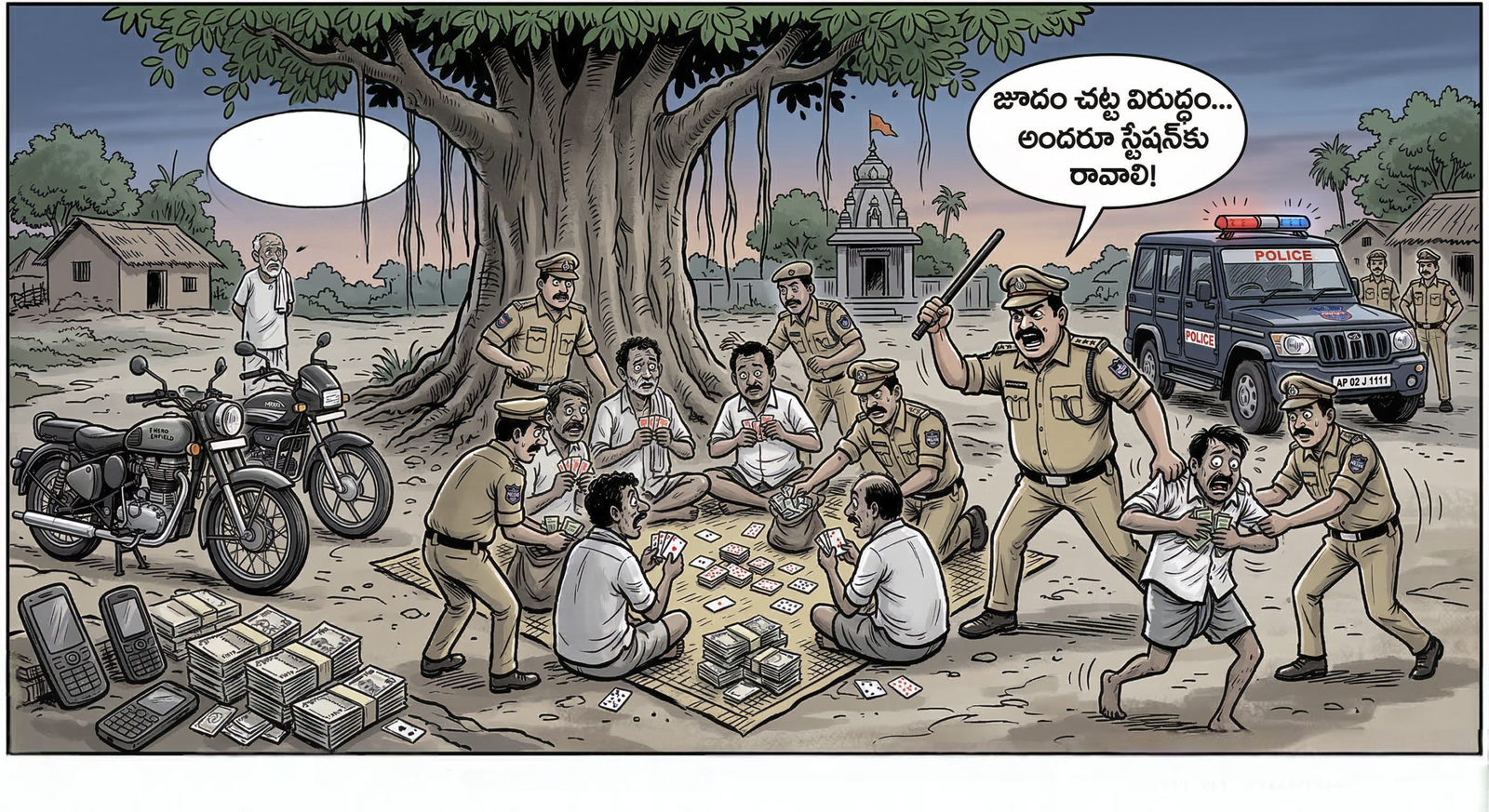 చంద్రమౌలమ్మ దేవాలయం సమీపంలో కొందరు వ్యక్తులు గుంపులుగా చేరి పేకాట ఆడుతున్నారన్న సమాచారం పోలీసులకు అందినట్లు తెలిసింది. ఈ సమాచారం ఆధారంగా జిల్లా పోలీసు అధికారుల ఆదేశాల మేరకు స్పెషల్ పార్టీ అక్కడికి చేరుకుని ఆకస్మికంగా దాడులు చేపట్టింది.