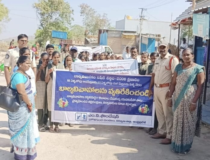 బాల్య వివాహాలు చేయడం చట్టరీత్యా నేరమని, అలాంటి ఘటనలను సమాజం మొత్తం కలిసి అరికట్టాల్సిన అవసరం ఉందని హోళగుంద ఎస్సై దిలీప్ కుమార్ గురజాల అన్నారు. హోళగుంద మండల పరిధిలోని ఎల్లార్తి గ్రామంలో ఎంవీ ఫౌండేషన్ ఆధ్వర్యంలో బాల్య వివాహాల నియంత్రణపై అవగాహన ర్యాలీ నిర్వహించారు.