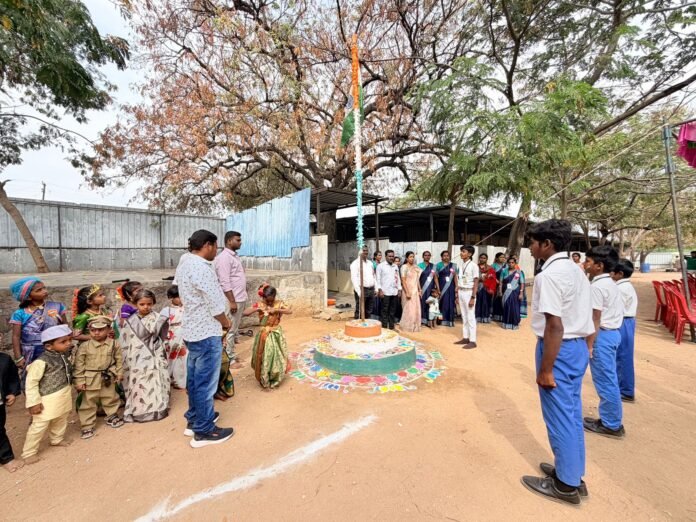 ఈ కార్యక్రమానికి ముఖ్య అతిథులుగా వెలుగు సీసీ నరసన్న, పాఠశాల చైర్మన్ నాగరాజు హాజరై జాతీయ జెండాను ఆవిష్కరించారు. అనంతరం విద్యార్థులు నిర్వహించిన మార్చ్పాస్ట్ అందరినీ ఆకట్టుకుంది. క్రమశిక్షణతో సాగిన మార్చ్పాస్ట్ విద్యార్థుల్లో దేశభక్తి భావాలను మరింత బలపరిచింది.ఈ సందర్భంగా విద్యార్థులను ఉద్దేశించి మాట్లాడిన ముఖ్య అతిథులు, భారత రాజ్యాంగం అమలులోకి రావడానికి జరిగిన పోరాటాలు, త్యాగాలను వివరించారు. ఐక్యత, సమానత్వం, అందరికీ సమ న్యాయం వంటి రాజ్యాంగ విలువలను విద్యార్థి దశ నుంచే అలవర్చుకోవాలని సూచించారు. పెద్దలను గౌరవిస్తూ, సమాజానికి, దేశ అభ్యున్నతికి తమ వంతు బాధ్యతగా కృషి చేయాలని పిలుపునిచ్చారు.తదుపరి విద్యార్థులు ప్రదర్శించిన సాంస్కృతిక కార్యక్రమాలు ప్రత్యేక ఆకర్షణగా నిలిచాయి. దేశభక్తి గీతాలు, నృత్యాలు, నాటికలతో విద్యార్థులు ప్రేక్షకులను అలరించారు. ఈ కార్యక్రమాలు విద్యార్థులలో దాగి ఉన్న ప్రతిభను వెలుగులోకి తెచ్చాయి.ఈ గణతంత్ర దినోత్సవ వేడుకల్లో పాఠశాల ప్రధానోపాధ్యాయులు విశాలాక్షి, రవికుమార్, ఉపాధ్యాయులు, ఉపాధ్యాయినులు, విద్యార్థులు, విద్యార్థుల తల్లిదండ్రులు తదితరులు పెద్ద సంఖ్యలో పాల్గొని కార్యక్రమాన్ని విజయవంతం చేశారు.
